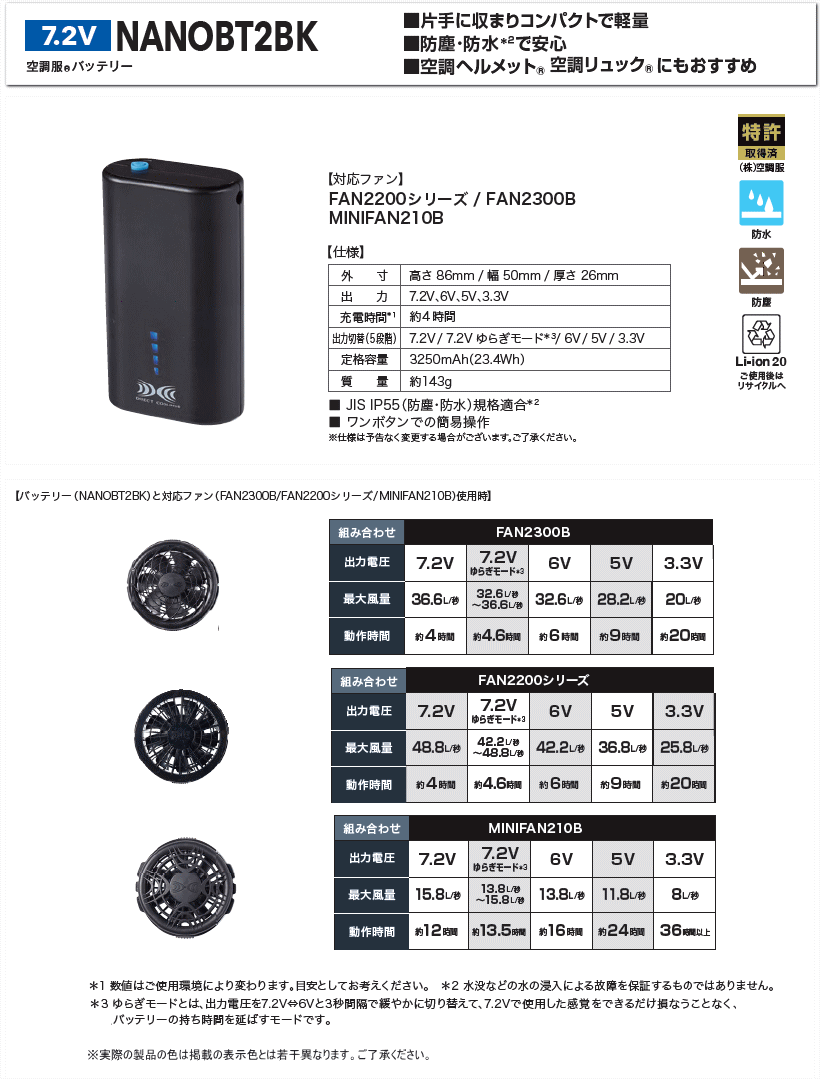 7.2V 空調服(R) バッテリー